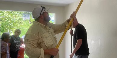 Pastor Carlos, a devoted volunteer and skilled in various tasks, along with Marilyn gets started on painting the carport.